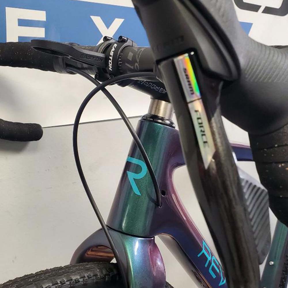 As a proud dealer of Revel Bikes, we’re thrilled to introduce the Revel Rover carbon fiber gravel bike. Revel’s expertise in titanium gravel bikes, dating back to their 2016 R+ model, paved the way for the Rover’s exceptional design. They meticulously engineered this carbon frame and fork to provide the perfect amount of dampening, smoothing out even your longest rides. Built for versatility, the Rover features the SRAM Universal Derailleur Hanger and four sets of bottle bosses, making it equally at home crushing a gravel race or exploring endless backroads.